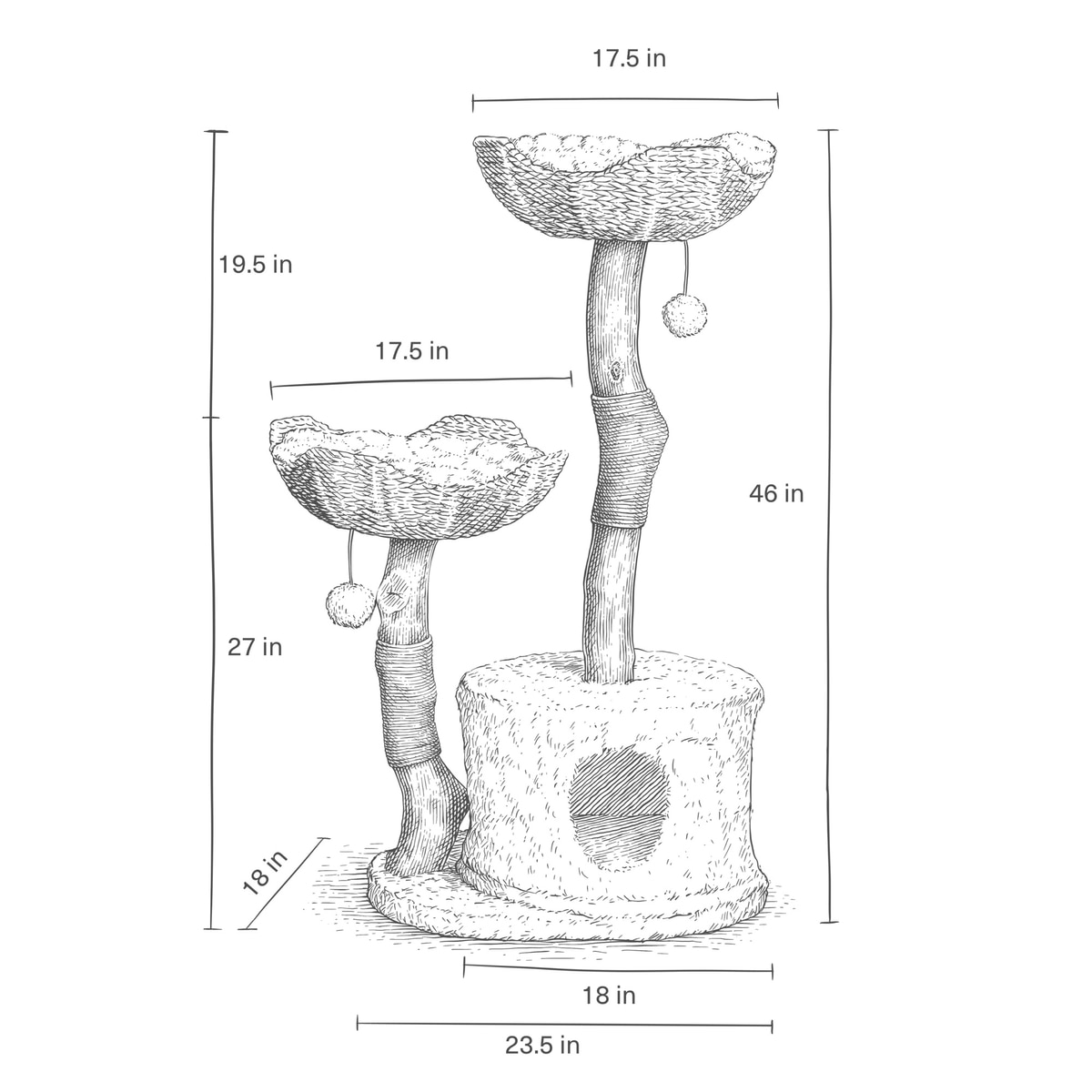 The baskets on this cat tree measure 17.5 inches in diameter.