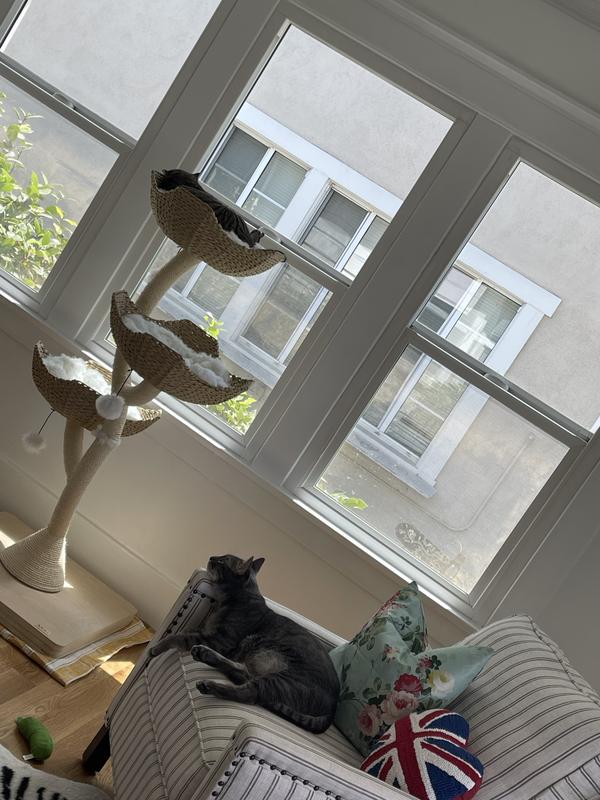 Really nice piece of furniture. Sturdier than any other tree I’ve bought. I love the fact I can replace the parts. 4 cats can destroy the jute on a cat tree in no