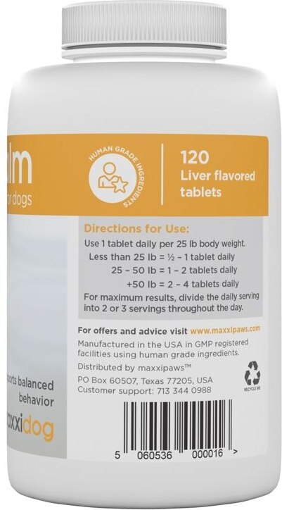 maxxipaws maxxicalm Calming Aid for Dogs, 120 tablets