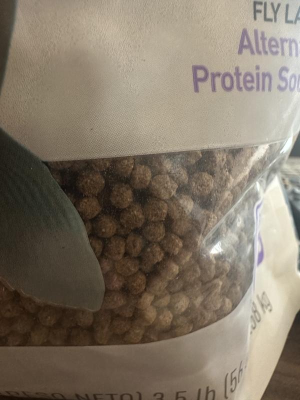 - The food contains black soldier fly larvae and shrimp meal for a well-rounded diet.