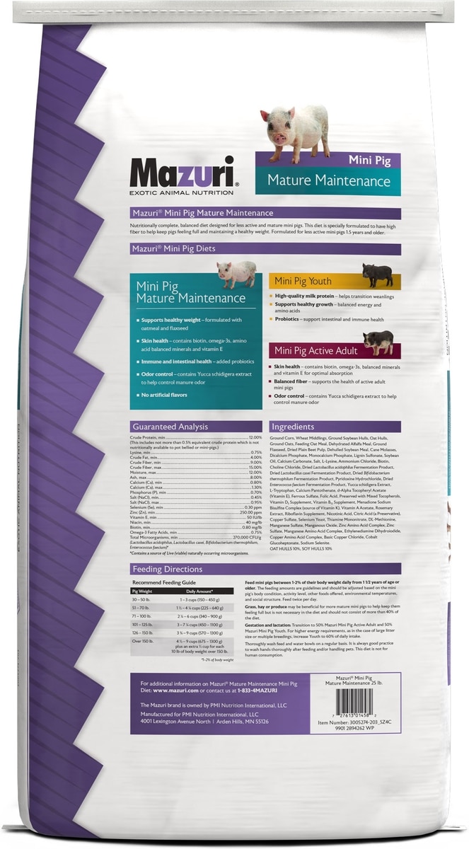 Mazuri Mini Pig Mature Maintenance Food, 25-lb bag