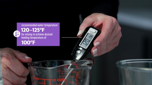 Prepare Mazuri® Hand Feeding Formula is designed for feeding chicks. Never feed dry powder without first combining with water. Use good sanitation practices and good quality water. To ensure complete hydration of the product, mix with cold water then add hot water to reach feeding temperatures: 100º to 106º F. Under- and over-heating can cause impaired gastric motility and crop burns, respectively. Water:formula ratio may vary due to species. Measuring of powder by weight is recommended; see below for average weight. Suggested mixing ratios should be modified to fit the nutritional and hydration needs of the birds you are feeding, and to ensure that the product will flow through the syringe you are using. 80% water:20% formula (by weight) to 60% water:40% formula (by weight). Do not dilute the formula excessively as this will reduce calories fed to the chick and will impair growth and development. Mix thoroughly with a fork or whisk until fully mixed. Store refrigerated until feeding time. Allow portion to be fed to reach room temperature prior to feeding; reheating is not advised. Use within 6 hours of mixing. Do not overfeed. Feed until crop is full (not overdistended) using the appropriate hand-feeding syringe. Most chicks will consume 10% or more of their body weight per feeding, but daily monitoring of weights is the most accurate way to ensure proper growth and feeding rates. Some species (house finches, sparrows, grackles) will continue to gape and bed when crops are full. For more information see Hand-Rearing Birds by Gage and Duerr, 2007 - John Wiley & Sons. As soon as chicks are able, begin introducing species-appropriate whole food items (e.g. insects, seeds) to bird intended for release. Provide chicks with any other food items to be consumed, such as high quality extruded diet (e.g., Mazuri® Small Bird Breeder or Mazuri® Insectivore Diet) plus 10-20% (by weight) species-appropriate whole food items. For best results, after removal of required amount store in original container with lid. Store in a cool 75°F or colder, dry (approximately 50% RH) location. Use within 1 year of manufacturing date.