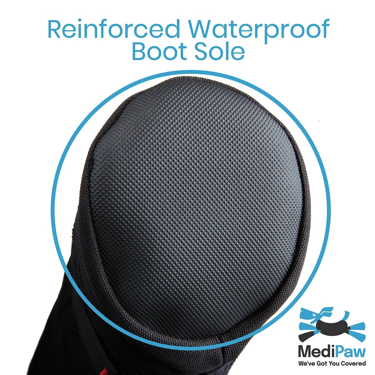 The soft bandage boot has a durable, anti-skid sole made of flexible rubber that protect soft bandages for up to two weeks. Although durable, it is not chew proof.