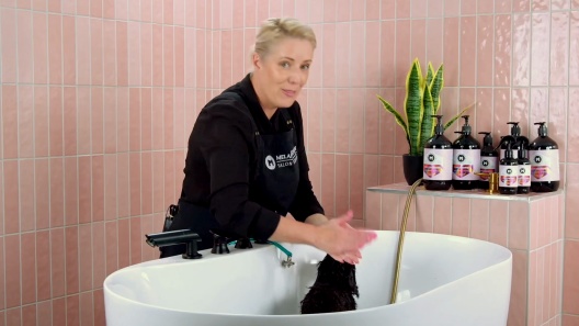 This is not a favorite overall primarily because of the overpowering scent. It appears white but blends out smoothly and then rises away well. It is not really thick like shea butter or coconut butter base conditioners. The issue I found is simply the scent. Rose is not my favorite scent to that is probably where my aversion comes from. It is very strong. I cannot smell anything else. And the scent stays on fur and skin even after bath time is long over. I am sure some will find it pleasant. It is just too strong for me. I did not notice any kind of reaction. Just a personal preference.