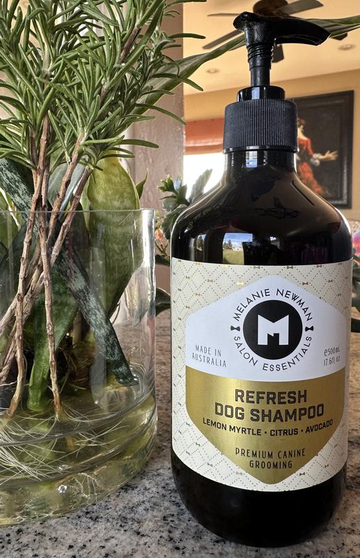 This Melanie Newman Refresh is the best dog shampoo I have ever used. I have had dogs for over 30 years. I have a 2 year old Siberian Husky with a thick coat and after his bath his coat was hydrated and shiny. I also have a 6 year old American Eskimo who loves bath time, this shampoo smells good and has a nice texture and feel to it. The bottle and pump are easy to use and durable, won't tip over. I love the infused essential oils and the vitamin enriched avocado oil. Definitely a keeper!