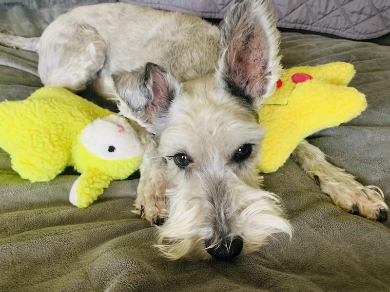 This shampoo smelled nice when I used it on Lark (an 80lb boxer hound mix). It was pretty easy to wash out as well. It did suggest washing the dog twice for best results, but Lark hates the water as it is and I hate to make the experience any longer than it needs to be so I only washed her once. The calming elements of the shampoo did not kick in while she was in the tub! Her white fur was once again white, although I don’t think the lovely smell was detectable after she was fully dry. All in all it was a good product, but I like when the nice smell sticks around for a little bit.