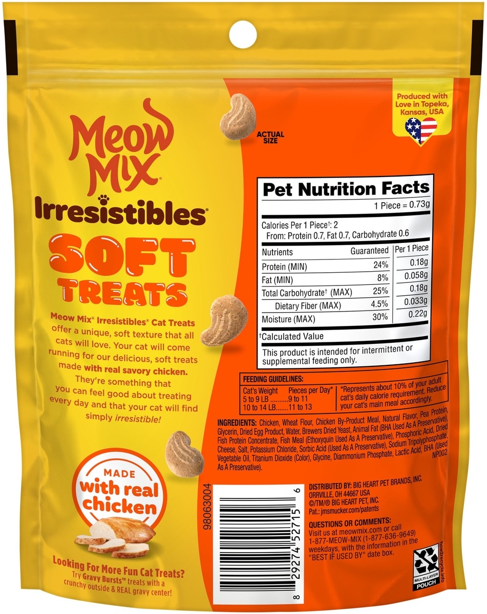 Meow Mix Irresistibles White Meat Chicken Soft & Chewy Cat Treats, 3-oz bag