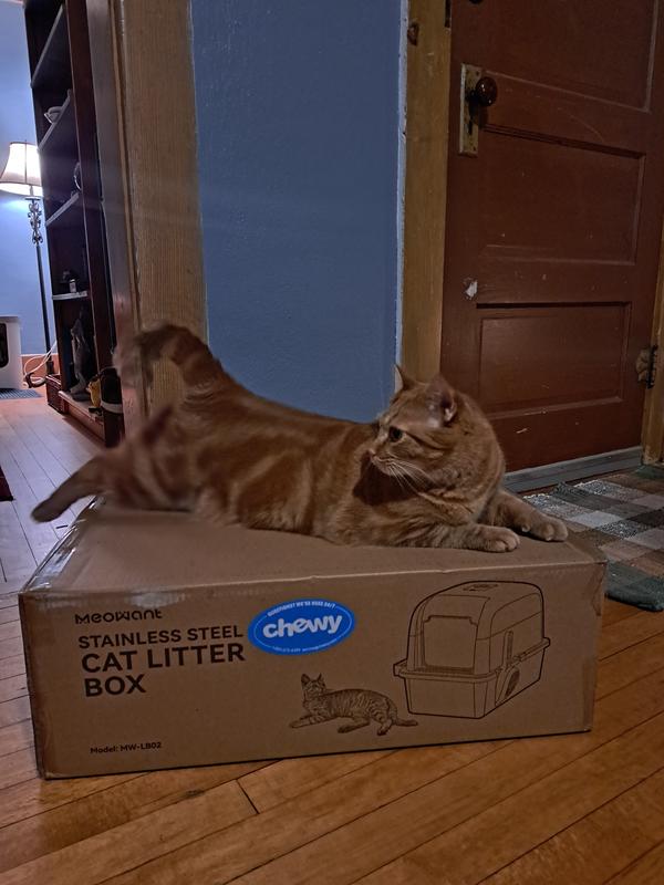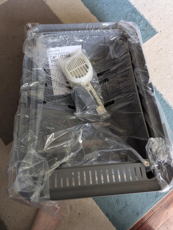 Meow meow mom and furbabies are ecstatic by this purchase. I was looking for an affordable stainless steel litter pan I knew if I can to Chewy I would have success. I have a one yr old and a 14 yr old feline I was nervous because they have different litter needs. But we have adjusted to this fancy stainless steel box. My next goal is to switch out all other plastic pans until I only have stainless steel. Which I believe is healthy for them and with all the scraping my kitten does I shouldn't have to worry about particles. I love the reinforced lid. Jaspa and Ashez no more plastic