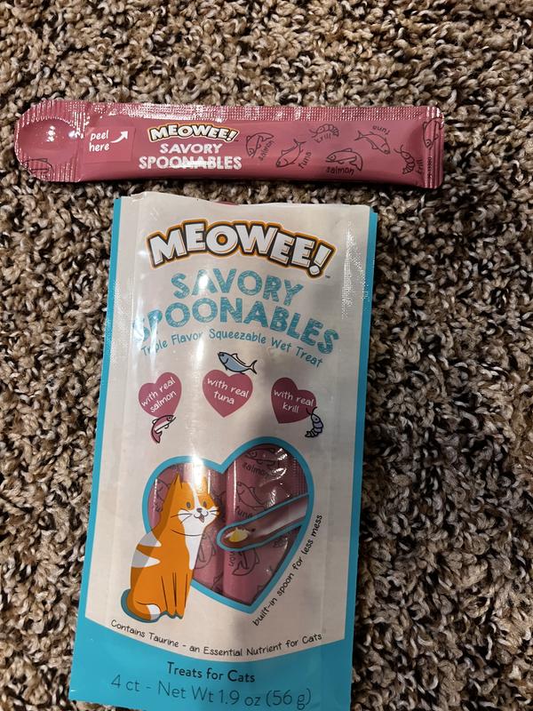 - DealMeowee! Savory Spoonables Triple Flavor Variety Pack Lickable Cat Treat, Squeezable Tube, 12 count$6.49 Chewy Price$9.99 List Price$6.17 Autoship PricePromo, Spend $100, Get $30 eGift Card with code NEWYEAR +1 deal