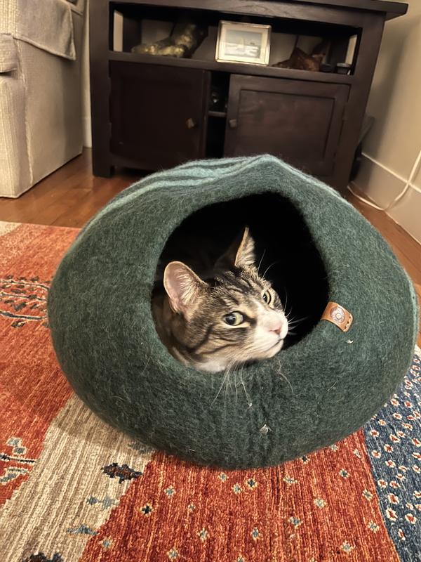 Meowfia cat caves are crafted from merino wool, chosen for its exceptional softness, durability, and natural breathability. Feel the quality in every stitch. It’s comfort your cat will love for seasons to come.