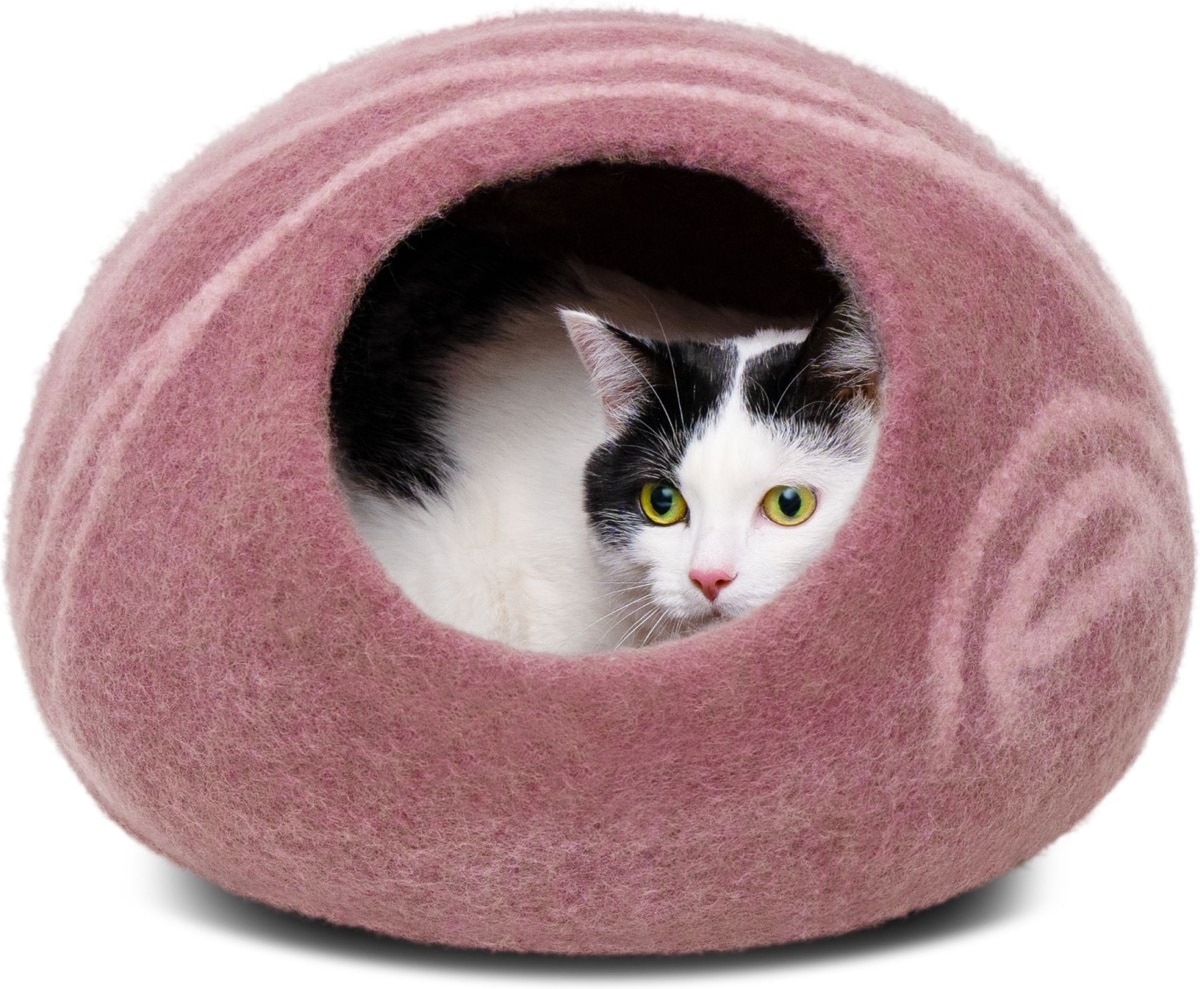 Meowfia Premium Felt Cat Cave Bed, Pink, Large