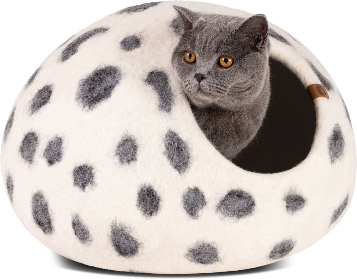 Meowfia Premium Felt Cat Cave Bed, Snow Leopard, Large