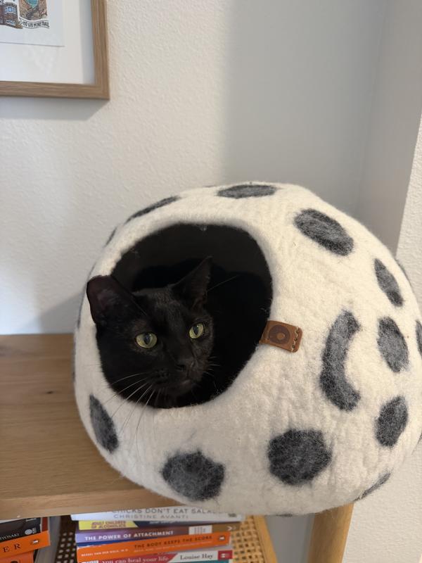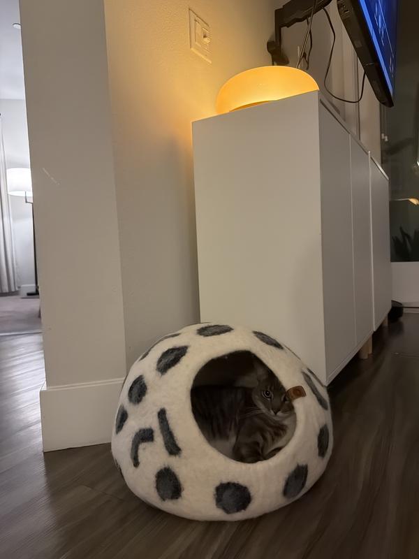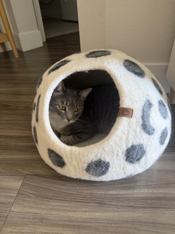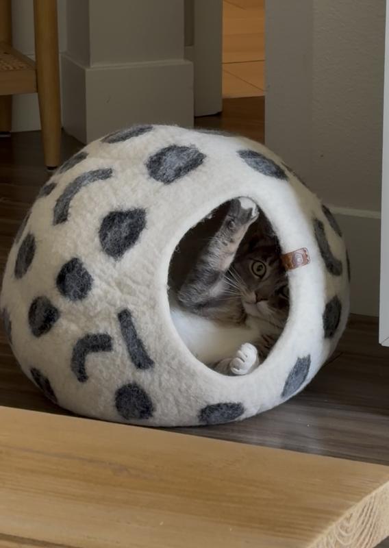 Meowfia cat caves are crafted from merino wool, chosen for its exceptional softness, durability, and natural breathability. Feel the quality in every stitch. It’s comfort your cat will love for seasons to come.