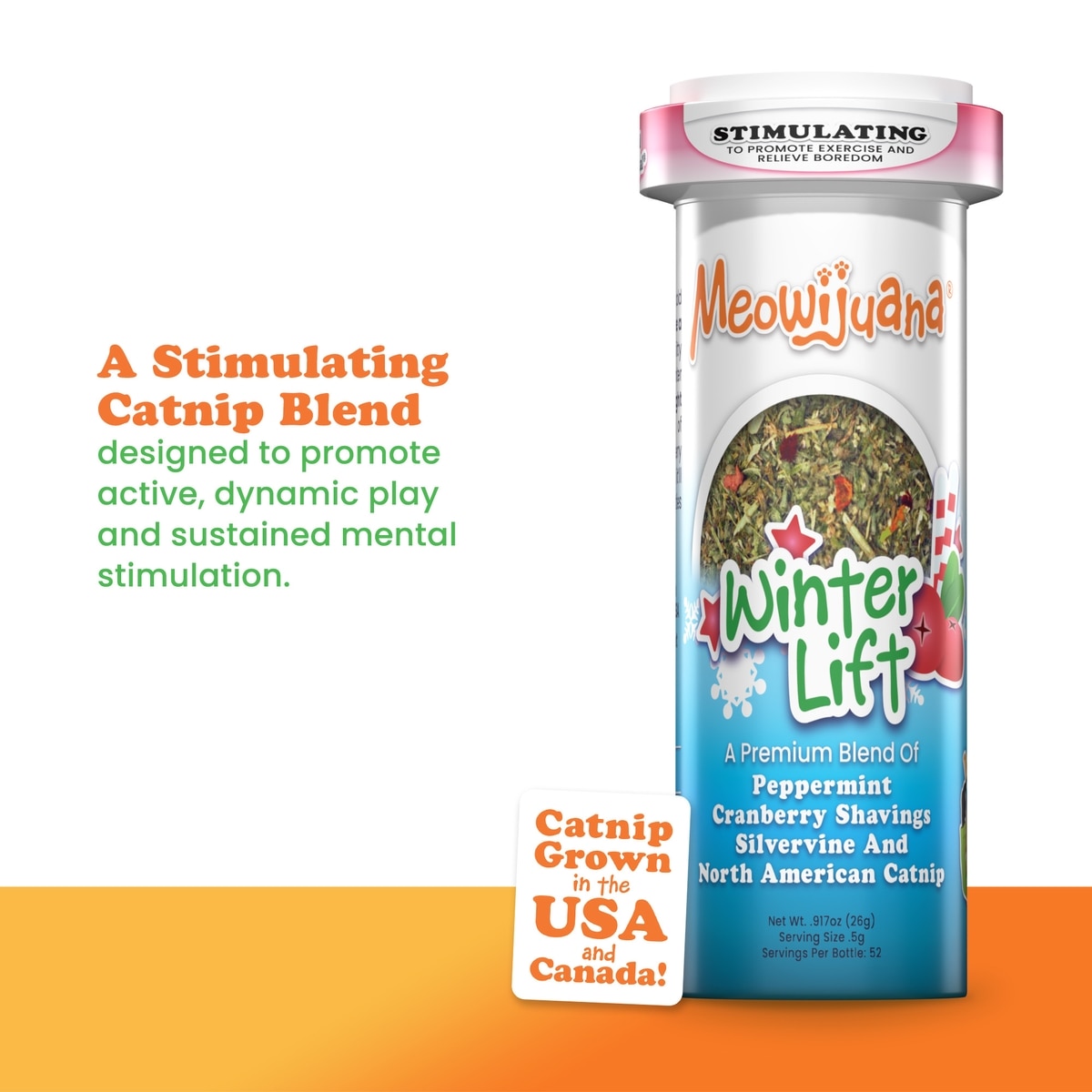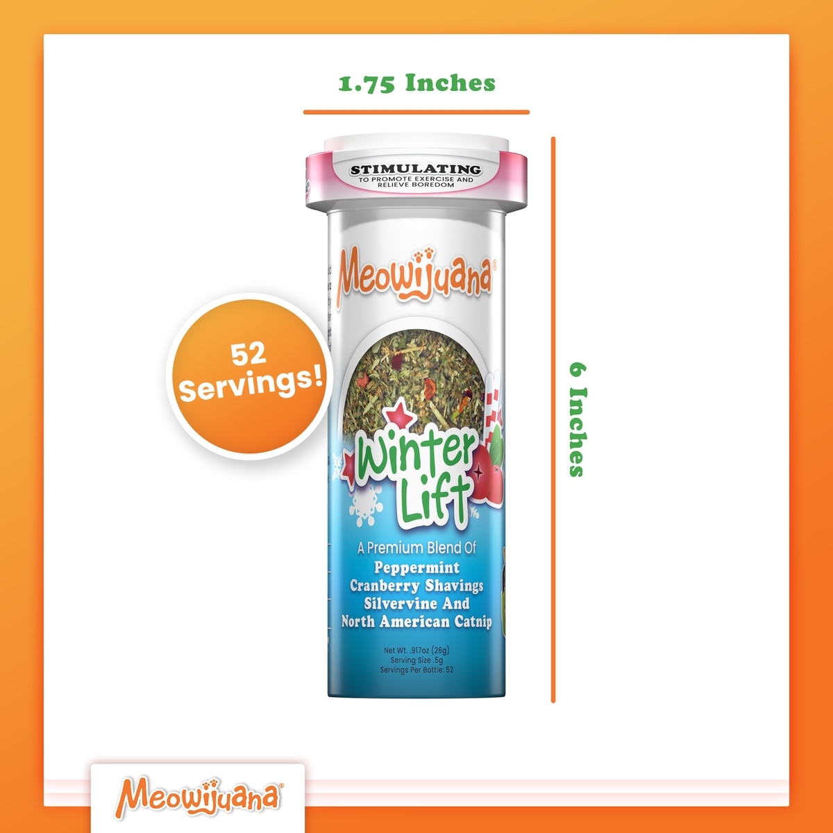 Meowijuana Winter Lift Peppermint, Cranberry, Silvervine, & Catnip Blend Catnip, 26-g jar