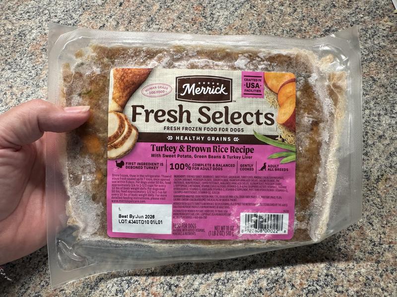 Merrick Fresh Selects Frozen Turkey & Brown Rice Dog Food, 378-oz bundle