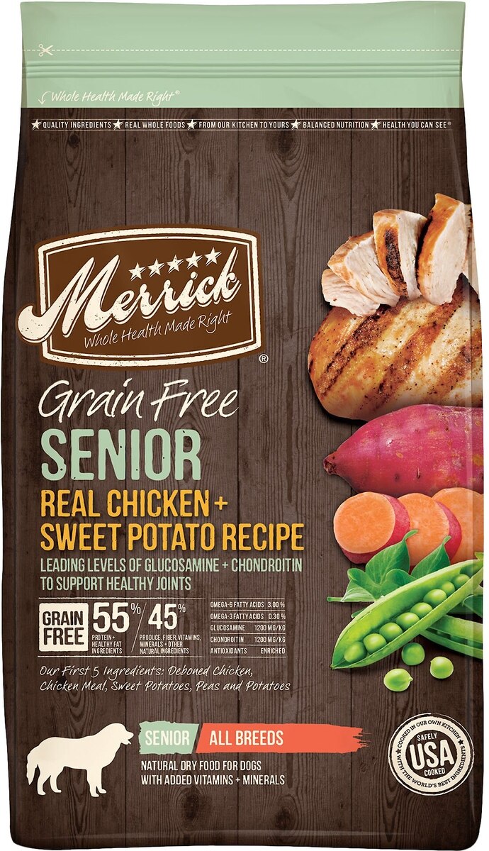 Merrick uses real, protein-packed high-quality USDA certified meats and fresh caught fish. While they only use USDA-inspected protein options in the dog food and treats, they cannot guarantee that the diets of all the animals that provide their protein sources are GMO-free. Merrick recipes use fruits, vegetables and whole grains that are GMO-free.