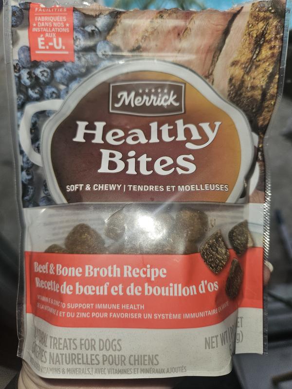 Merrick Healthy Bites Beef & Bone Broth Grain-Free Soft & Chewy Dog Treats, 6-oz pouch