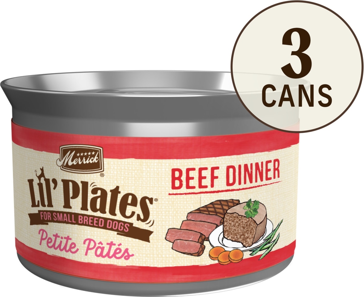 Merrick Lil' Plates Petite Pates Premium Grain-Free Beef Dinner Wet Dog Food, 3-oz can, case of 3