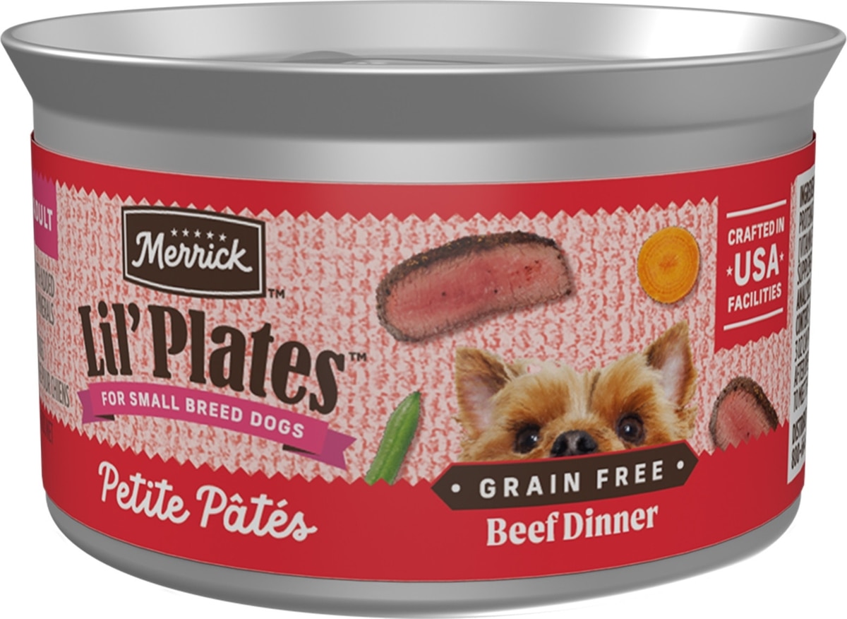 Merrick Lil' Plates Petite Pates Premium Grain-Free Beef Dinner Wet Dog Food, 3-oz can, case of 24