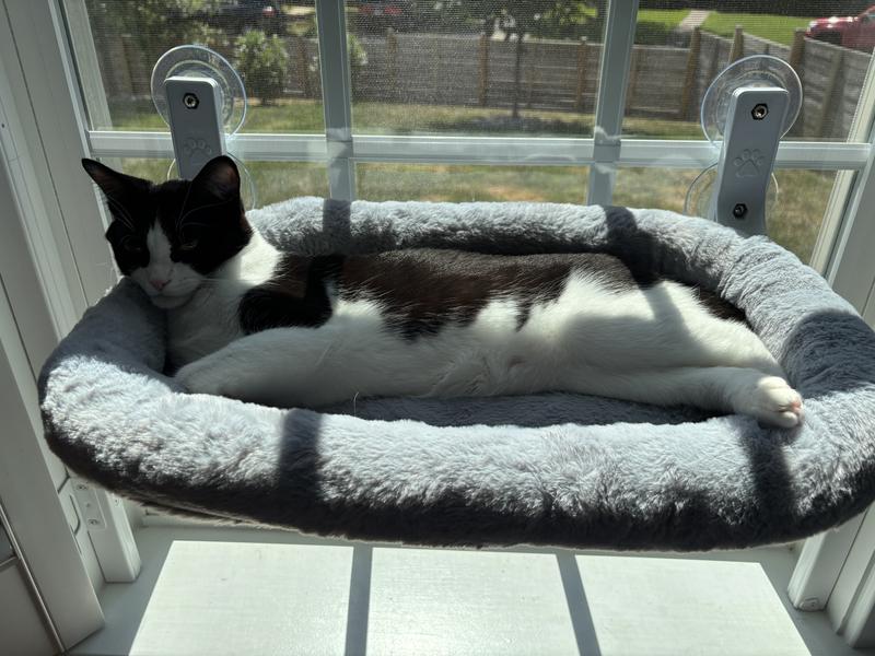 This window perch is the perfect, soft bed for my cats! I have it on a sunny window in my office and my cats (especially the tuxedo) will sleep in it all day. It