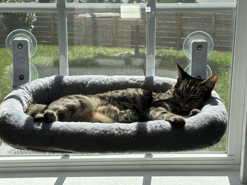We’ve had this window bed for a couple of months now, and it’s been great so far. The suction cups hold strong (we haven’t had any issues with it falling) but it’s