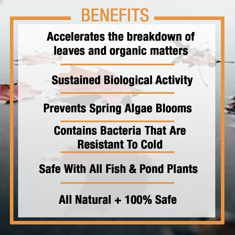 Start your winter maintenance program in early fall. This will give the bacteria and cellulose enzyme sufficient time to acclimate themselves before the winter freeze.