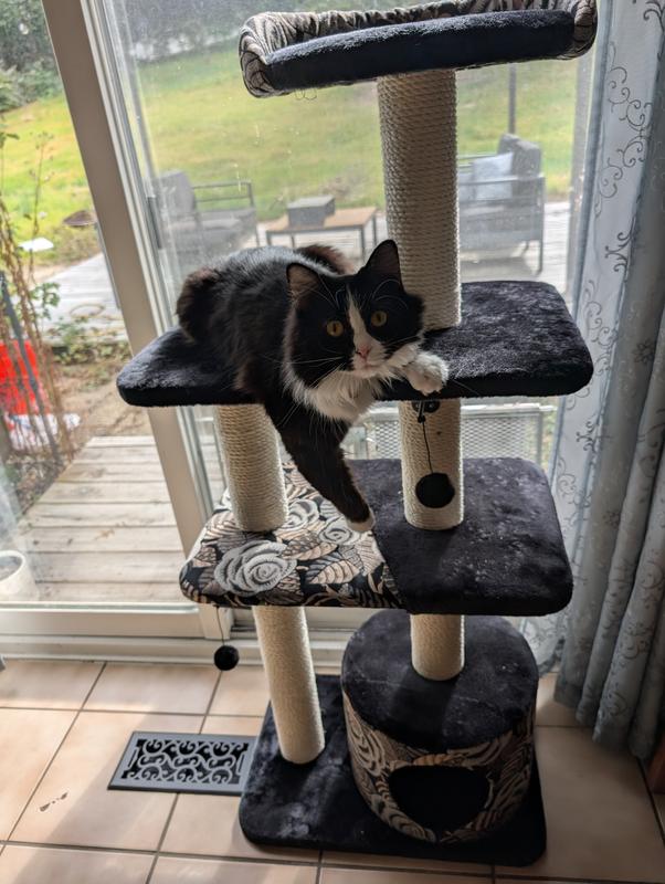 MidWest Feline Nuvo Tower 50.5-in Faux Fur Cat Tree & Condo, Black Floral