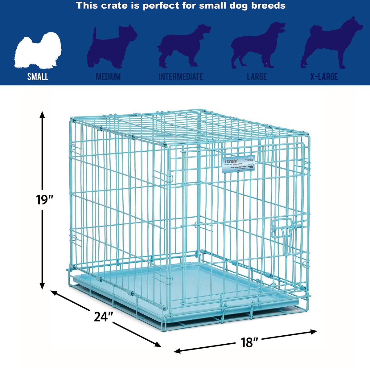 MidWest iCrate Double Door Collapsible Wire Dog Crate Kit, Blue, 24 inch