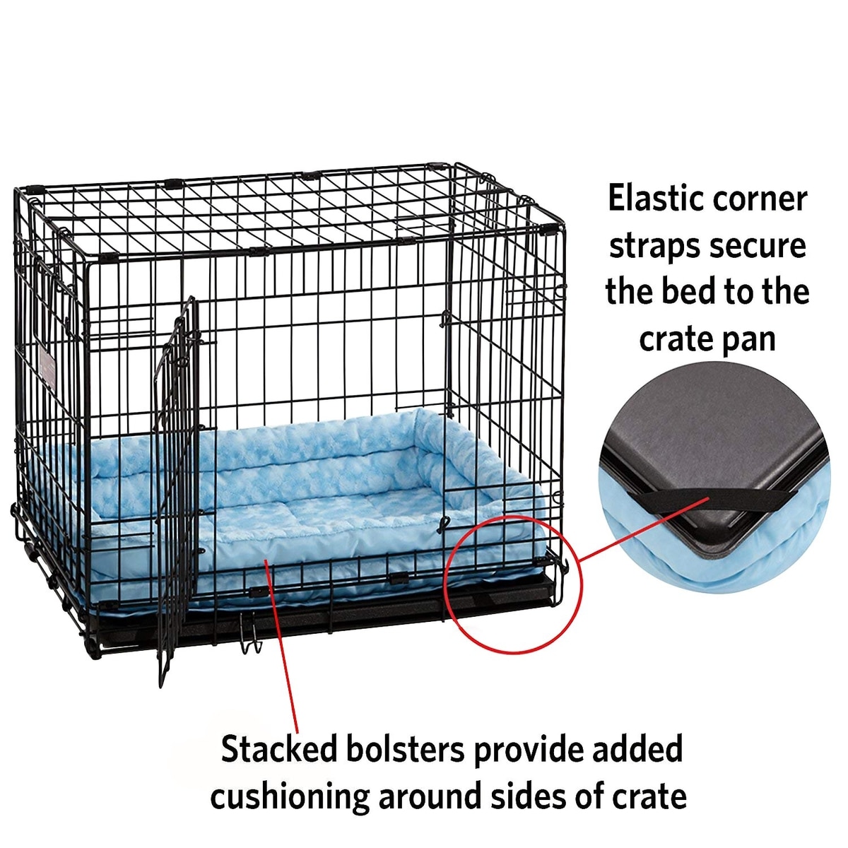 MidWest Quiet Time Fashion Plush Double Bolster Dog Crate Mat, Powder Blue, 22-in