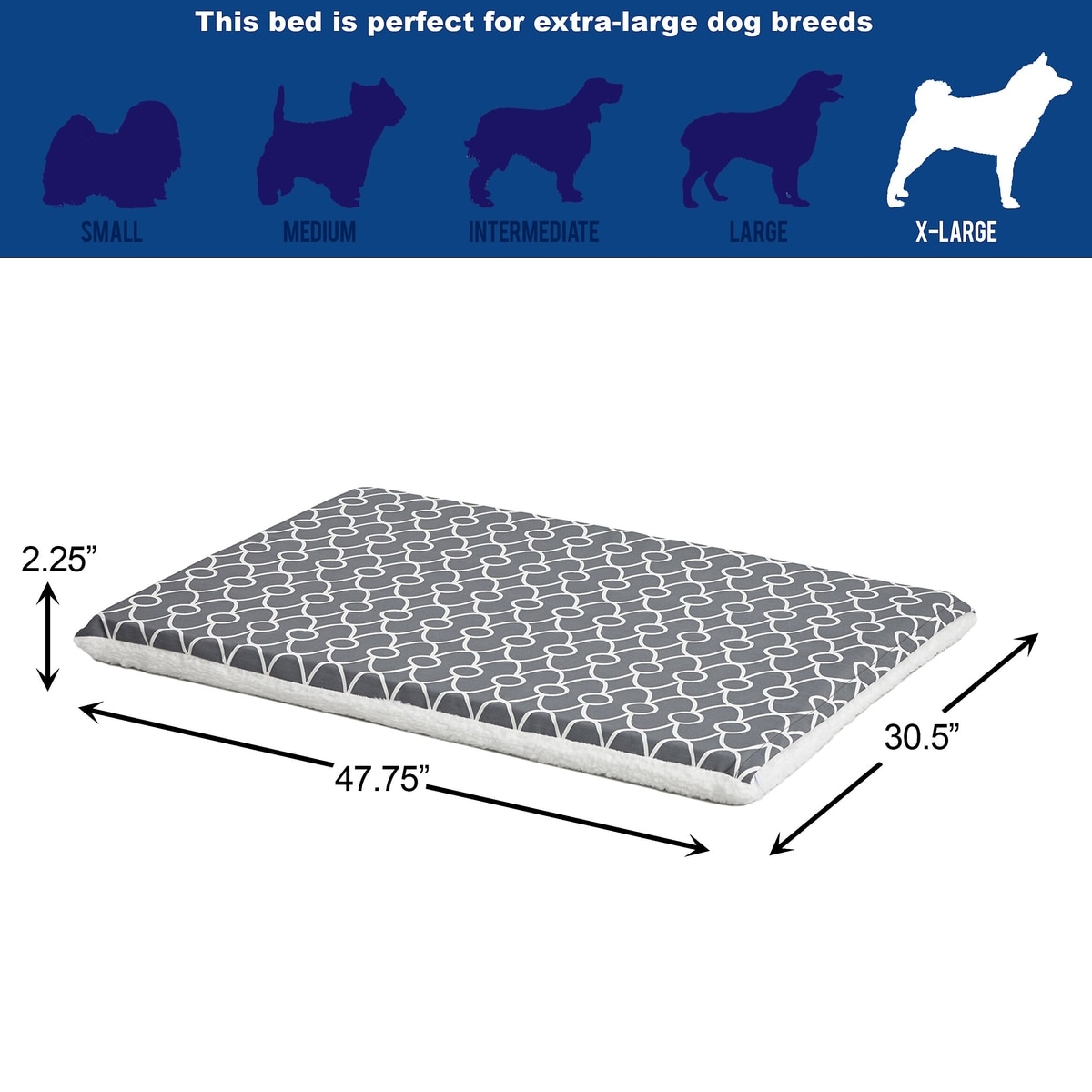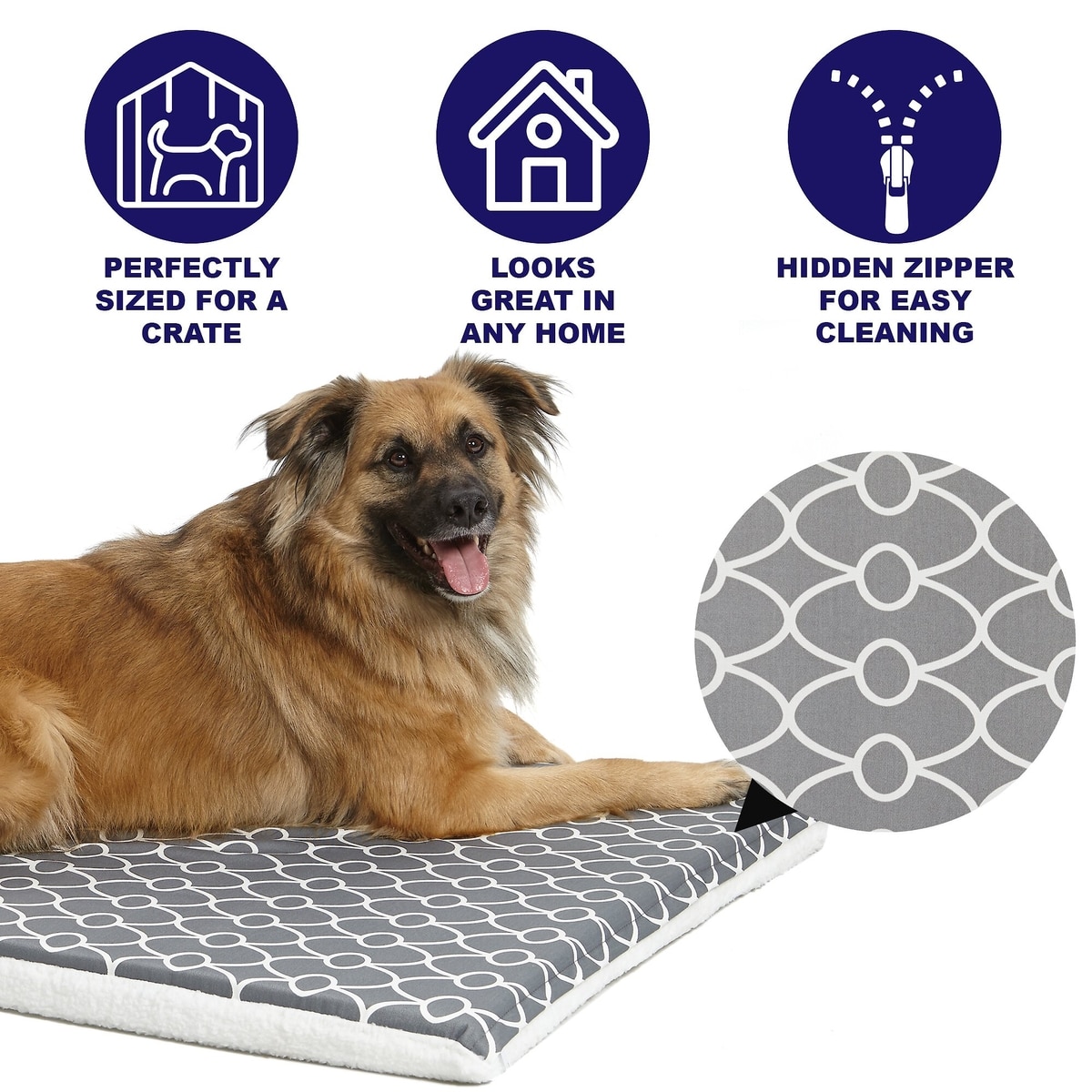 MidWest QuietTime Geo Print & Fleece Reversible Dog Crate Mat, Gray, X-Large