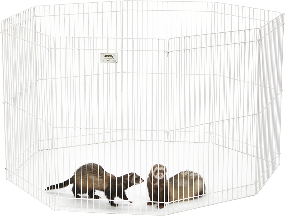 This pen is suitable for small pets including ferrets, hedge hogs, gerbils, guinea pigs, and other non-jumping small animals.