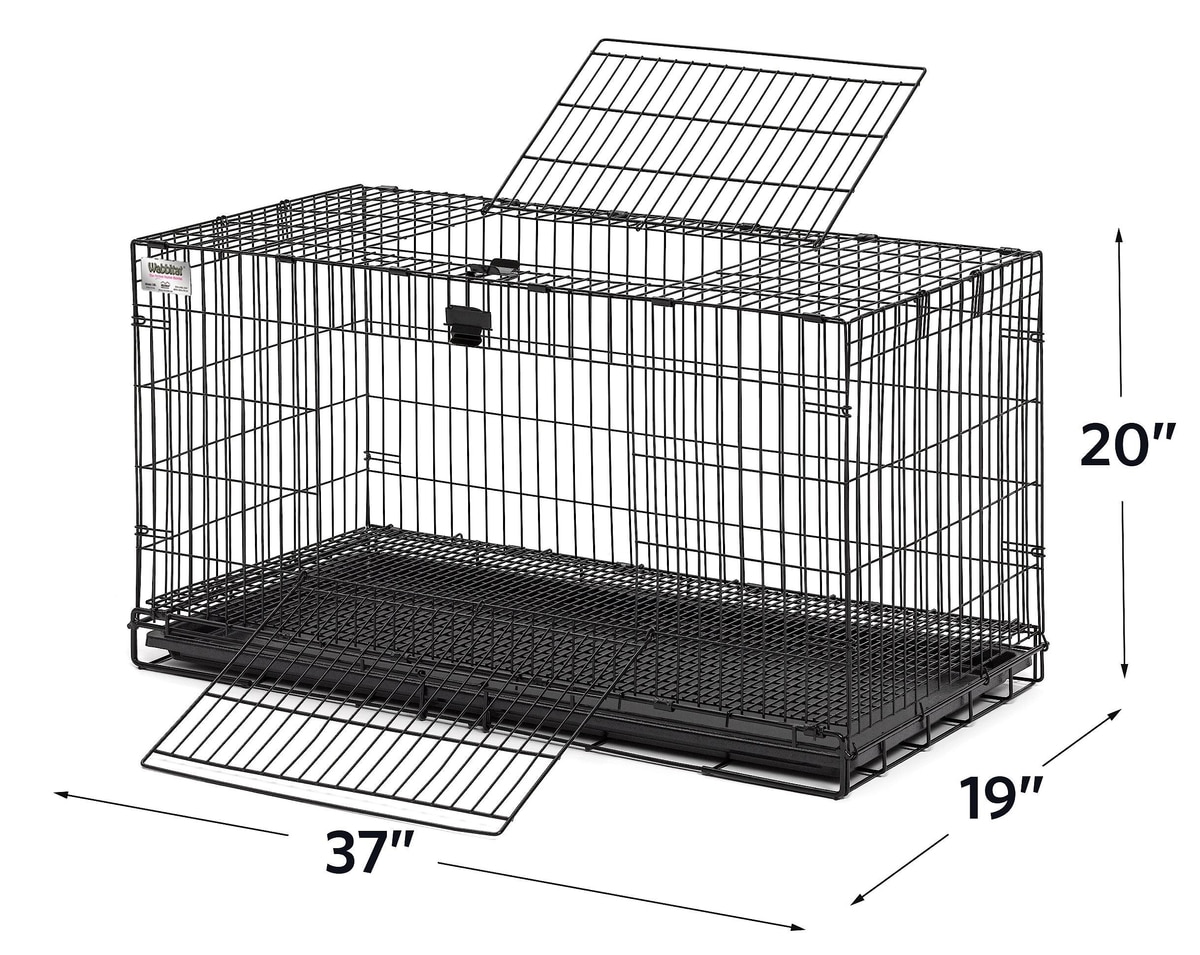 • Two doors, one on the top and the other on the side are operated with a secure slide-latch which allows for one handed door operation, making entering and exiting simple