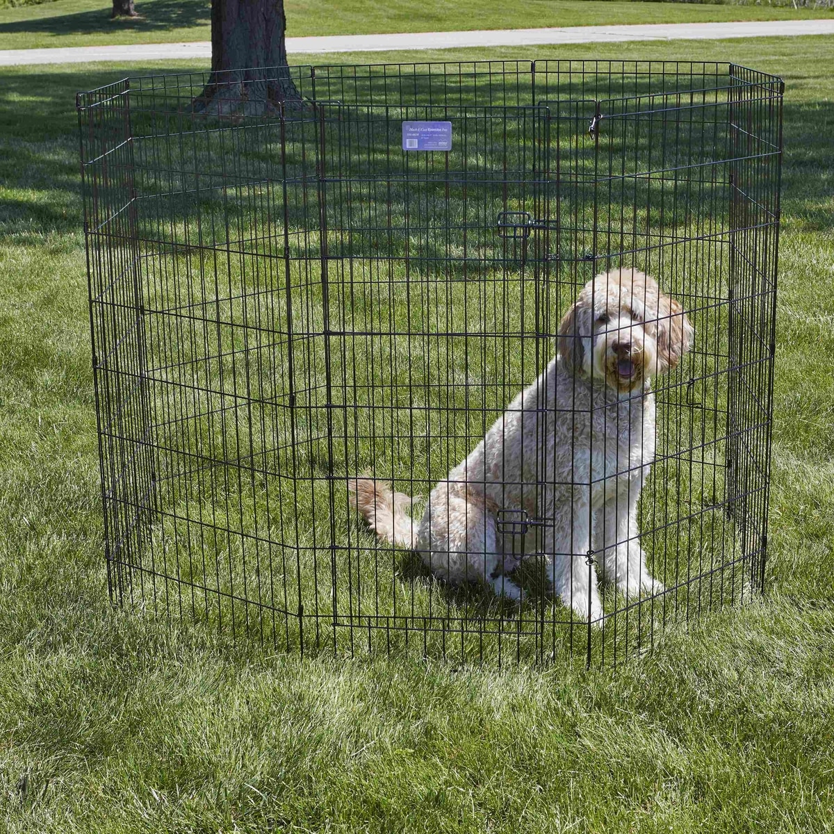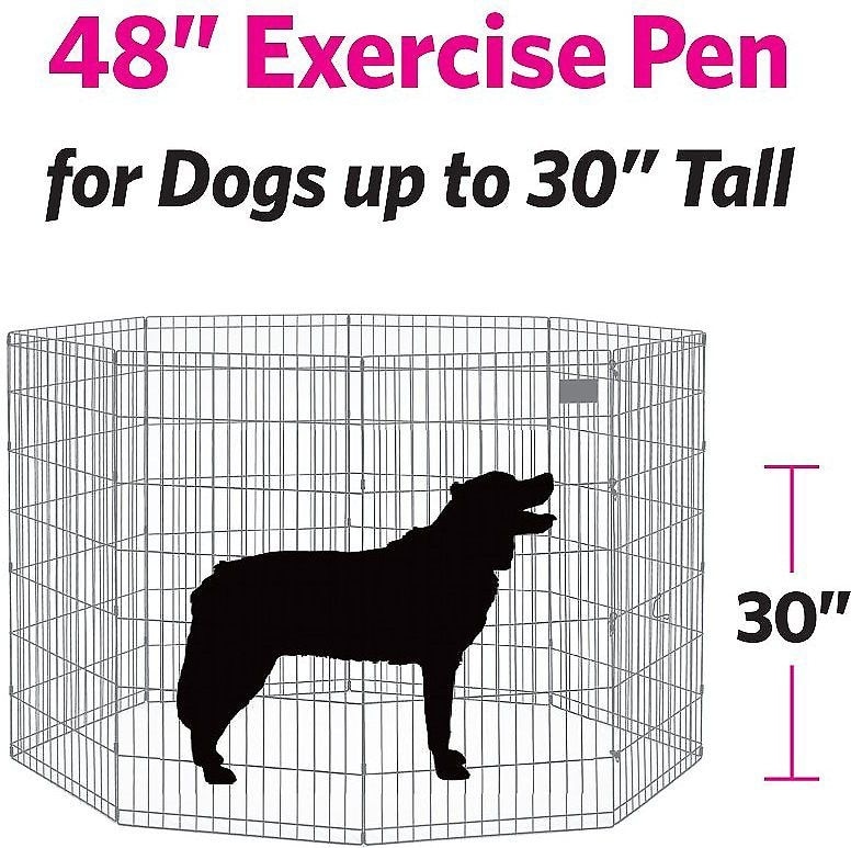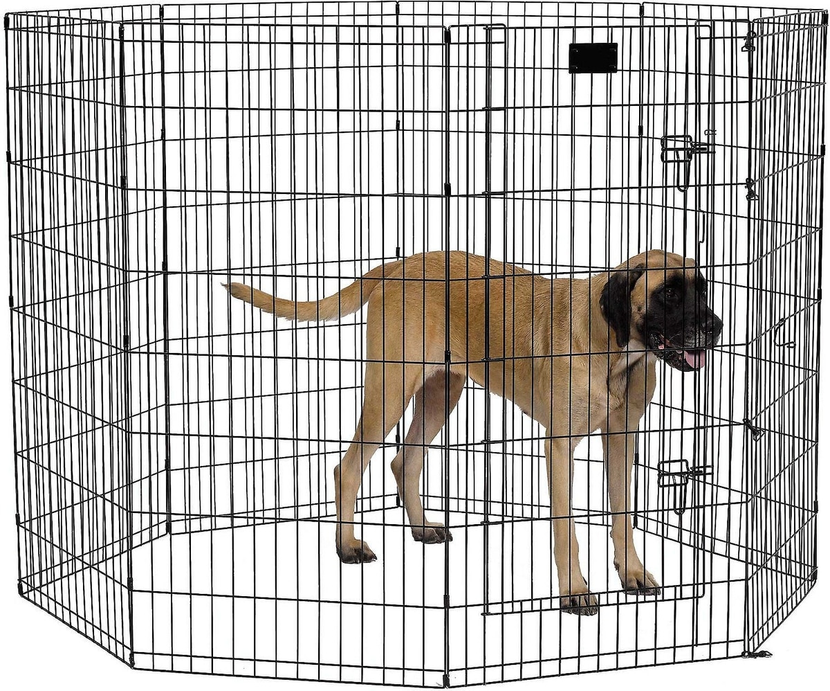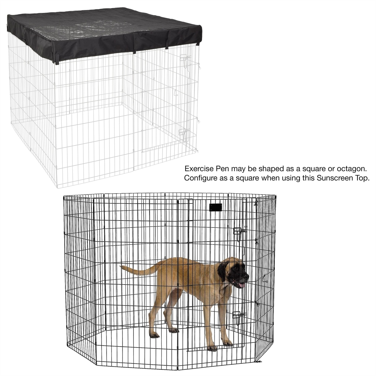 Bundle: MidWest Wire Dog Exercise Pen with Step-Thru Door, Black E-Coat, 48-in + Exercise Pen Top Sunscreen Accessory, Square Configuration, Black