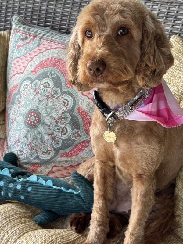 Husband doesn't like the pink for our female lab so this color with paisley is just right.
