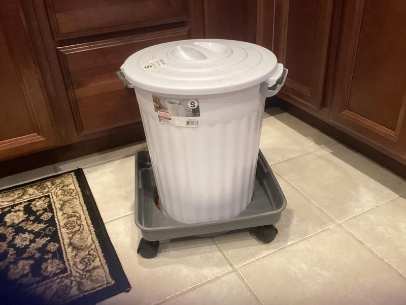 I have a 3 gal bucket with kibbles in it. I was dragging it across my wood floor and of course that runs the risk of scratches. When I got the Mighty Tuff Heavy Duty Rolling Dolly, I immediately put that bucket in it. I was instantly IN LOVE with it! It rolls with ease, avoids scratching my floor and makes moving it to clean floors a breeze. I would HIGHLY recommend this product to anyone that keeps dry kibbles in a bucket. You wont be disappointed!