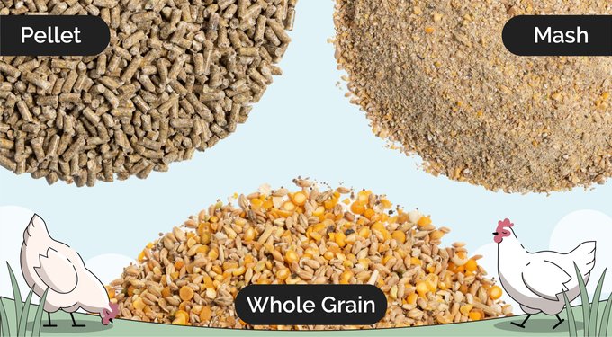Choose Whole Grain feed for a granola-like texture, perfect for foraging, or opt for Mash feed, finely ground to aid digestion. Pellet feed provides a balanced diet in an easy-to-serve form, reducing waste. All are packed with optimal nutrition.