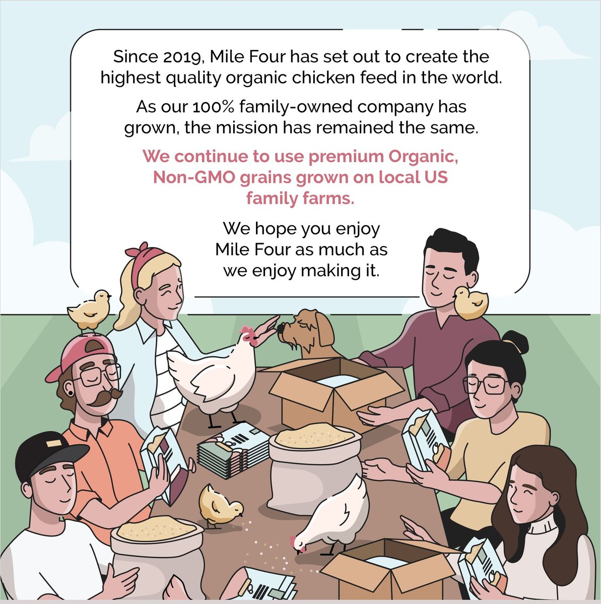 Since 2019, Mile Four’s mission has been to deliver nutritionally rich, all-natural, USA-grown organic feed and eco-friendly coop essentials. As a 100% family-owned company, they are dedicated to ensuring the well-being of every backyard flock.