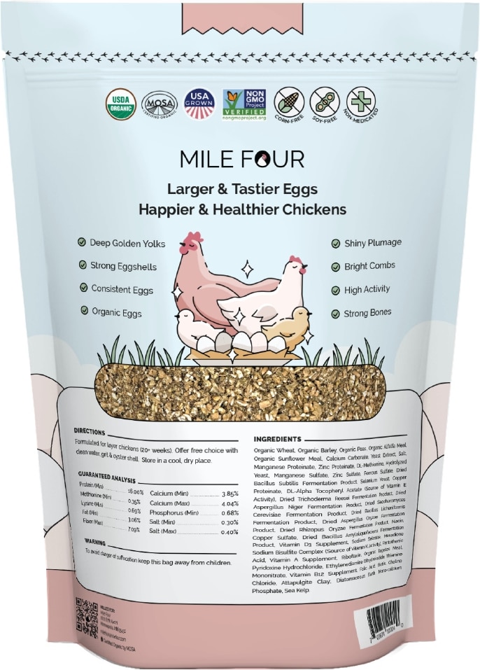 Since 2019, Mile Four’s mission has been to deliver nutritionally rich, all-natural, USA-grown organic feed and eco-friendly coop essentials. As a 100% family-owned company, they are dedicated to ensuring the well-being of every backyard flock.