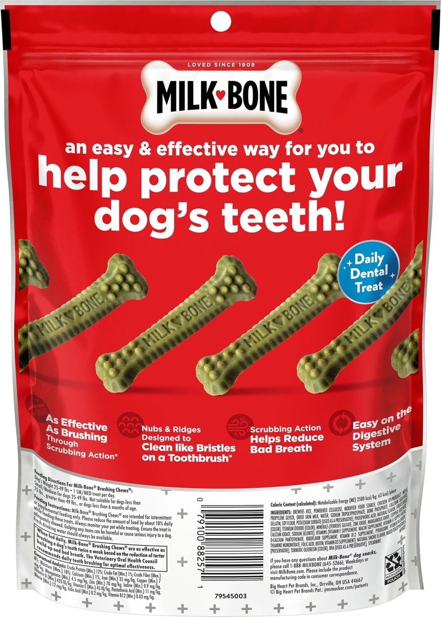 - Milk-Bone Original Brushing Chews Small/Medium Chicken Flavor Daily Dental Dog Treats, 9 count$5.48 Chewy Price$5.21 Autoship PricePromo, New Customers Only: Spend $49+, Get $20 eGift Card
