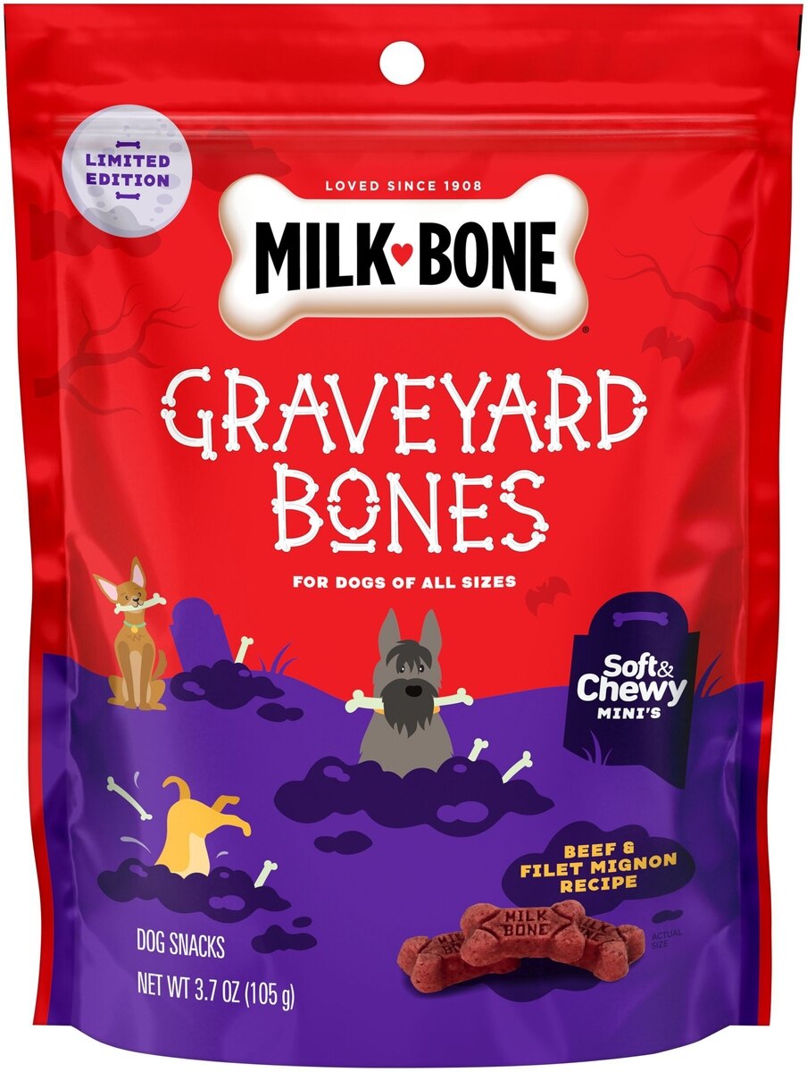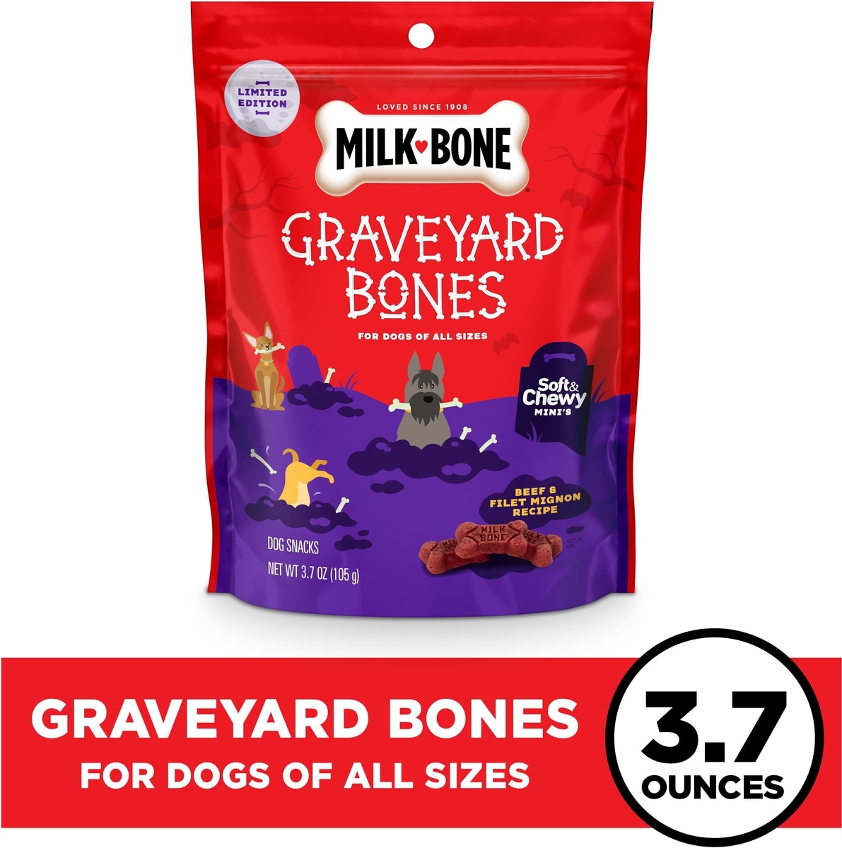 Milk-Bone Minis Halloween Graveyard Beef Bones Adult Soft & Chewy Dog Treats, 3.7-oz pouch