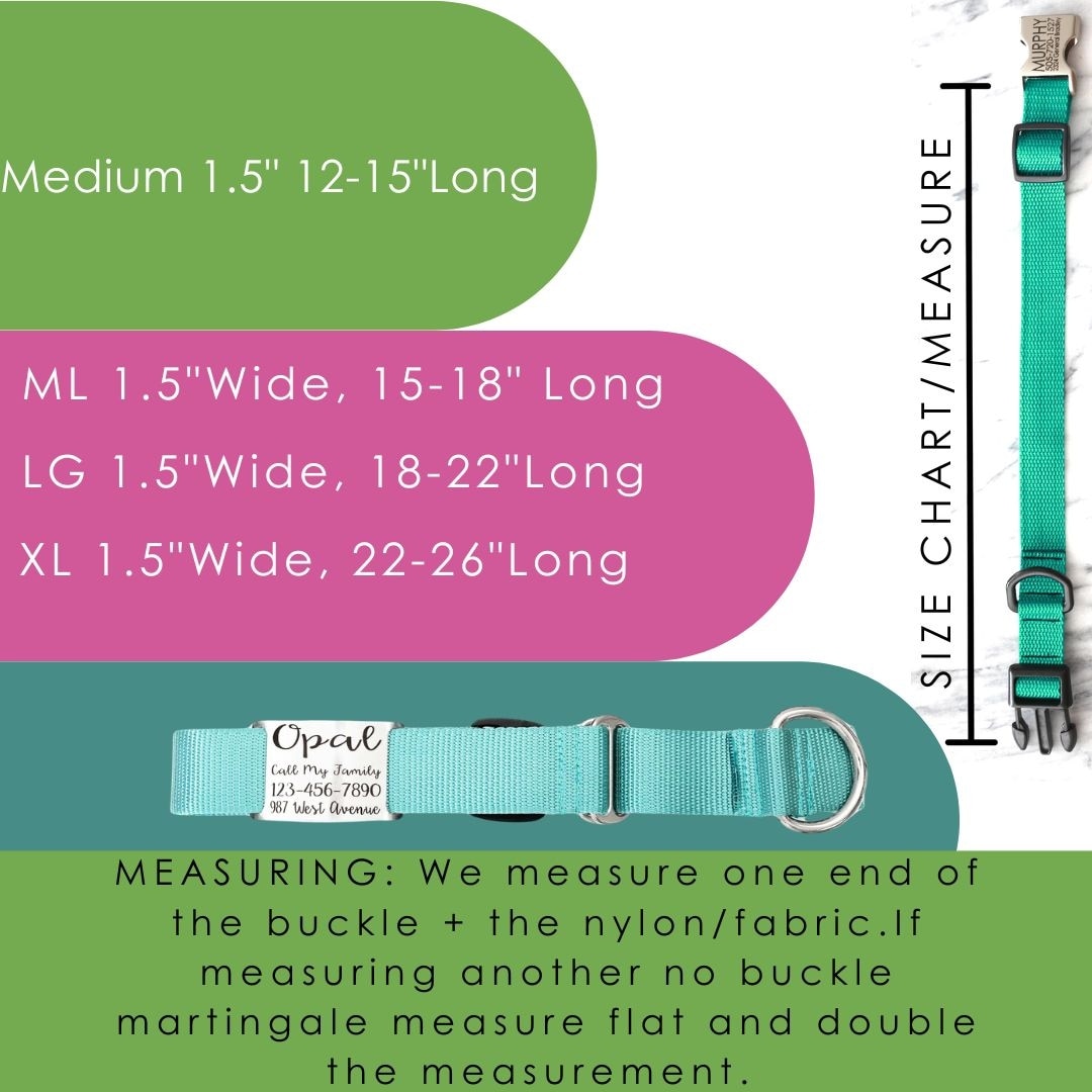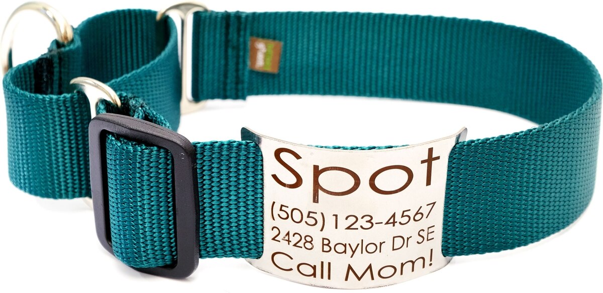 Mimi Green Nylon Personalized Martingale with Nameplate Dog Collar, Forest Green, X-Large: 22 to 26-in neck, 1.5-in wide