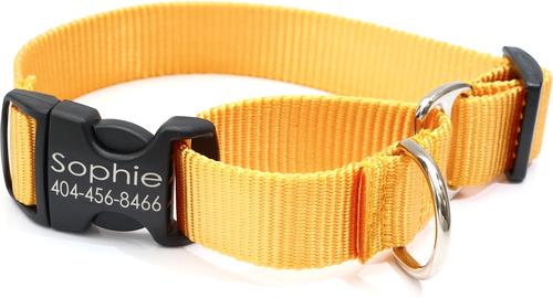 Mimi Green Personalized Nylon Martingale with Black Plastic Buckle Dog Collar, Yellow, X-Large