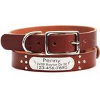 Mimi Green Studded Leather Dog Collar with Personalized Riveted Nameplate, Olive, X-Large