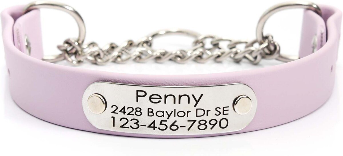 Mimi Green Waterproof Leather Martingale Dog Collar with Personalized ID Tag, Pastel Purple, Medium