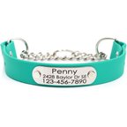 Mimi Green Waterproof Leather Martingale Dog Collar with Personalized ID Tag, Black, Medium/Long