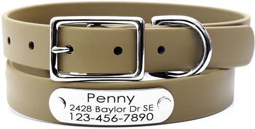 Mimi Green Waterproof with Riveted Name Plate Dog Collar, Olive, Small 5/8"