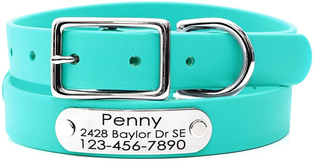 Mimi Green Waterproof with Riveted Name Plate Dog Collar, Teal, Small 5/8"
