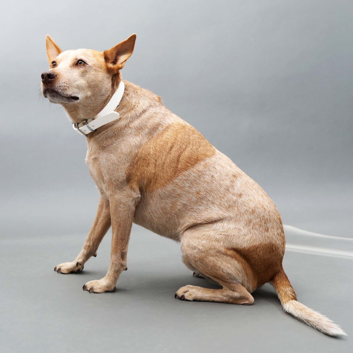 This collar features a polyester webbing on the inside with a durable PVC coating that protects against moisture, abrasions, rotting and stink.