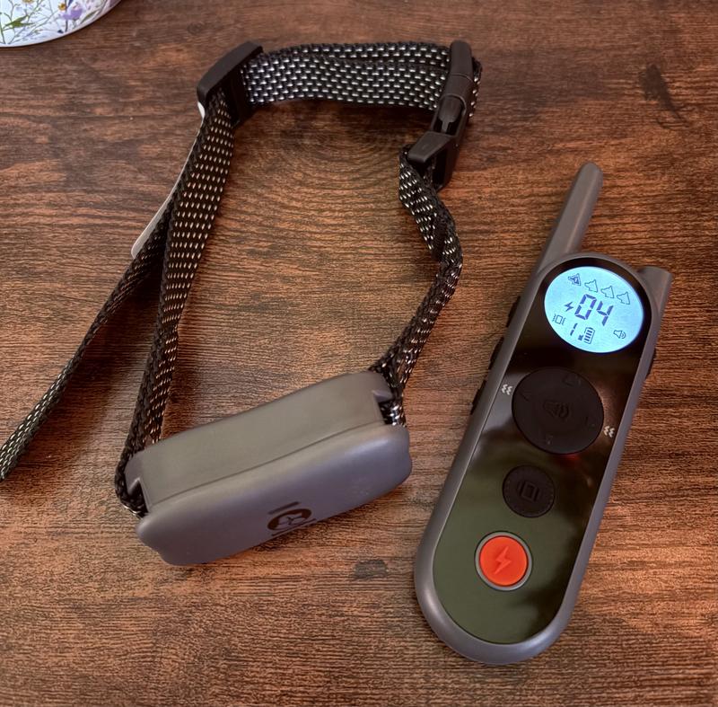 This collar is made well from material that seems like it will hold up over time and be easy to keep clean. The remote is a handy size, and even has a flashlight to help you find your pup in the evenings. The collar can provide noise, vibration, and/or shock with 30 different levels to choose from. I appreciate that the level of correction is so adjustable. The package includes a set of replacement prongs, a wrist strap for the remote, and a small plastic device used to test that the shock is coming through properly. It will be a useful training tool, and would be great for someone working with a dog off-leash who needed immediate corrections for safety.