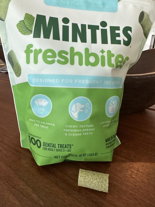 Minties is the fastest growing dental treat brand*. Made with five natural breath fresheners, our tasty chews and bones freshen breath, clean teeth, and make daily dental care feel more like a treat.